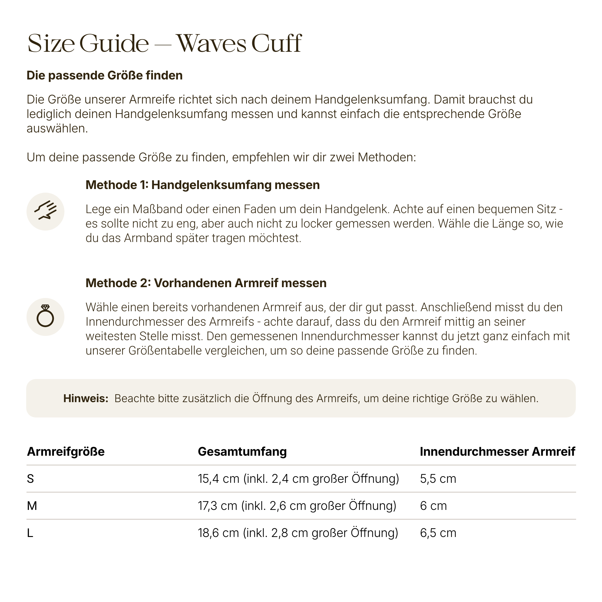 Auswahl - Größe Armreif